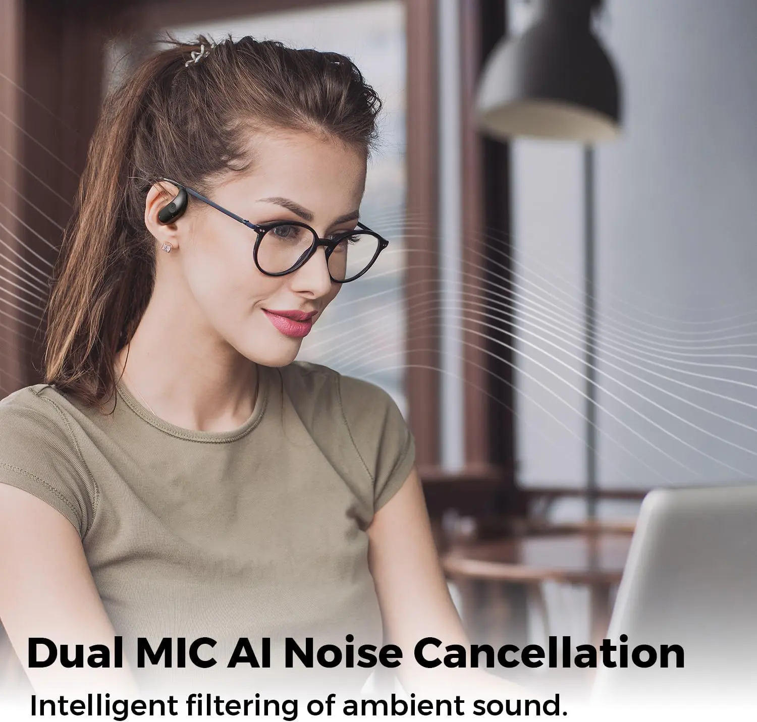 - 【AI ClearCall & Dual MIC Clarity】 Stay heard clearly in noisy environments with Dual MIC and AI noise cancellation technology. Advanced algorithms suppress background noise for crisp calls open ear earbuds, even in busy streets or crowded spaces.