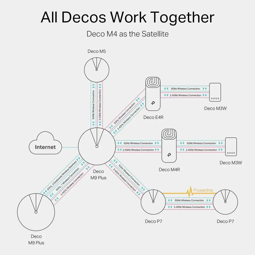 - Wide coverage-Deco M4 three-pack delivers Wi-Fi to an area of up to 4,000 sq.ft. Simply add more Decos to network anytime to increase coverage as you want