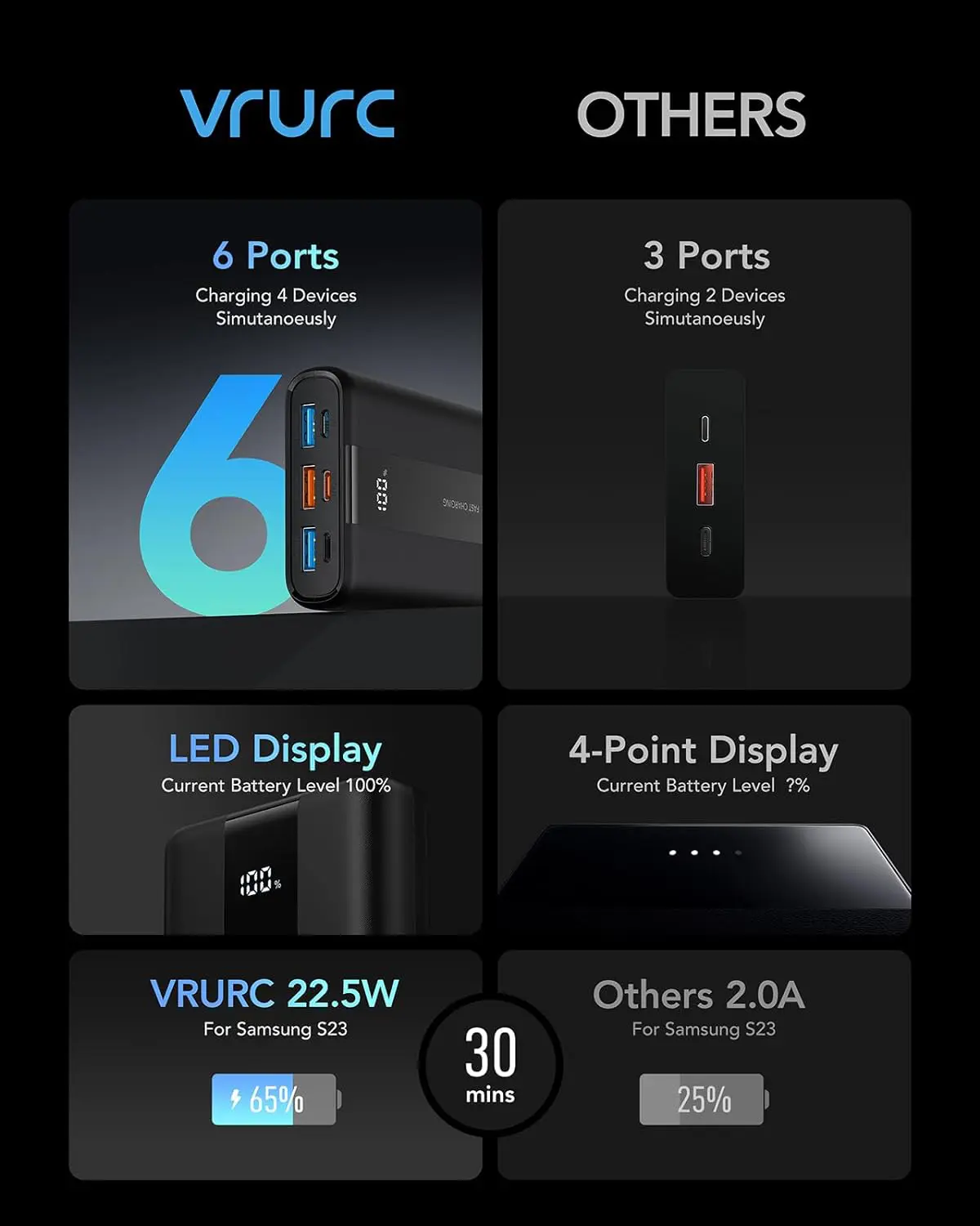 - [Accurate LED Display] The battery pack is equipped with an LED smart display, which can accurately grasp the remaining power at any time and prepare for your next plan. If you have any questions or problems, please feel free to contact us and we will solve them for you within 24 hours. Buy VRURC products, please recognize the ‘’VRURC-AE ‘’store