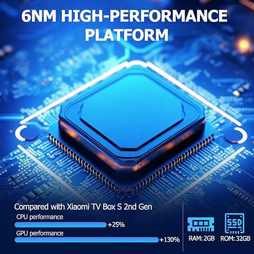 Strong Performance: Equipped with a 64-bit processor for seamless performance, it also integrates a quad-core A2.5 CPU with a maximum clock frequency of 55GHz and 2GB RAM + 32GB ROM. 25% more CPU performance and 130% more GPU performance compared to the Xiaomi TV Box S 2nd Gen, delivers a smooth experience.