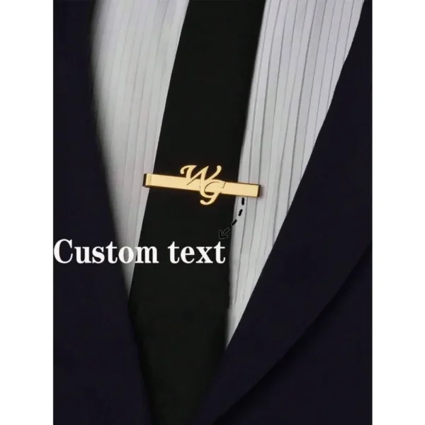 مشبك ربطة عنق رجالي مخصص، إكسسوار زفاف أنيق بحروف محفورة من الفولاذ المقاوم