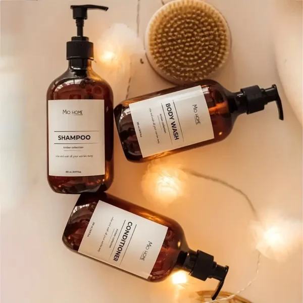 عبوات إعادة تعبئة للشامبو والبلسم وغسول الجسم – 3 زجاجات سعة 500 مل مع ملصقات وتصميم عملي وأنيق